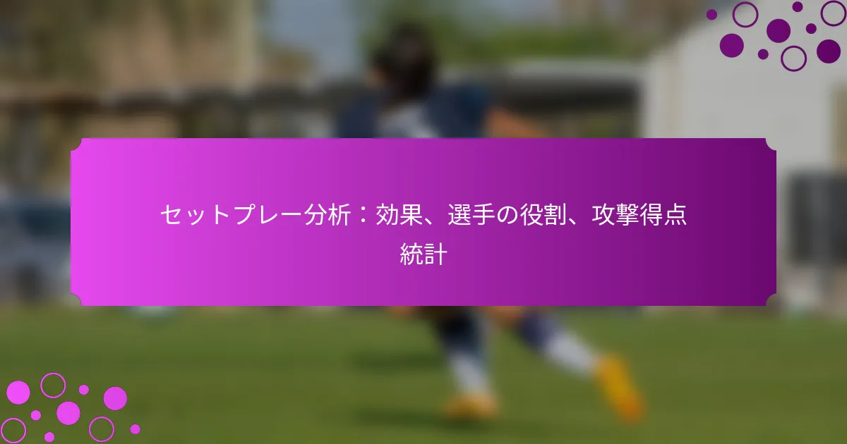 セットプレーはサッカーにおける重要な瞬間であり、試合の結果に大きな影響を与えることがあります。その効果は、ゴールに結びつく頻度を示す成功率によって定量化されることが多いです。これらの状況における選手の役割を分析することで、チームは得点機会を向上させ、防御戦略を強化することができます。さらに、攻撃の得点統計は、セットプレーが全体のゴール数に与える大きな影響を強調し、チームの攻撃アプローチにおける重要性を浮き彫りにします。