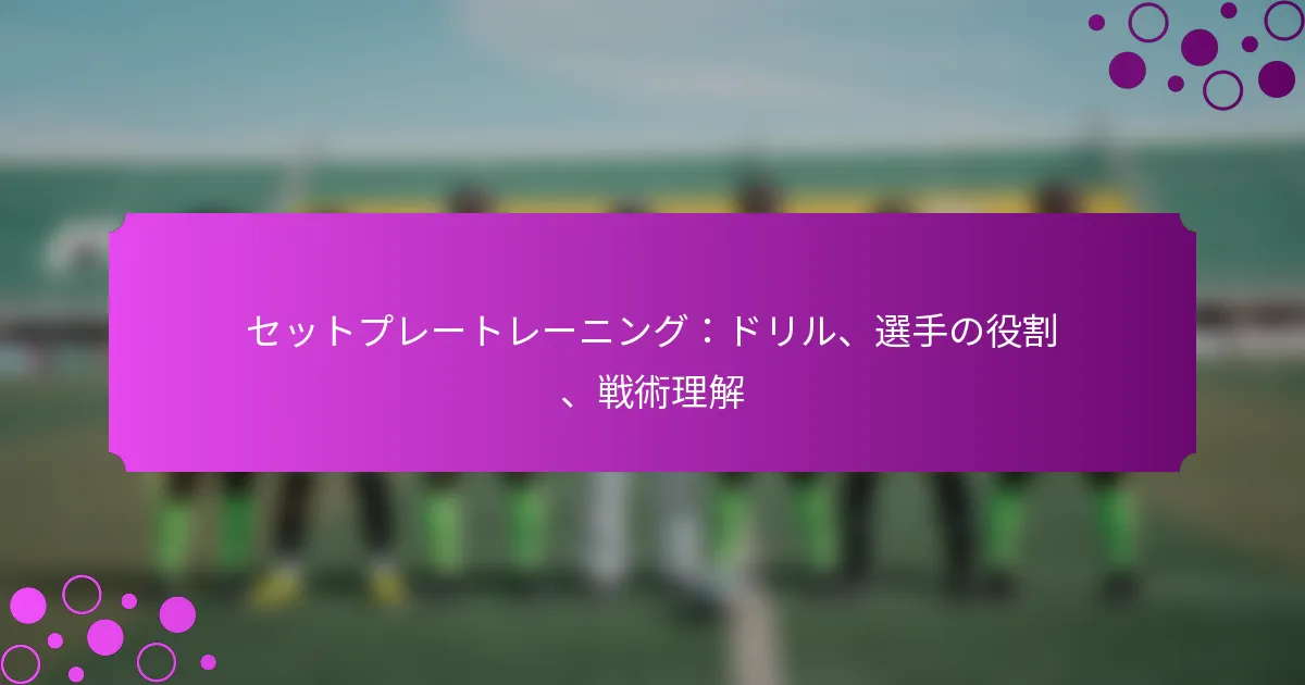 セットプレーをトレーニングに組み込むことで、チームの攻撃力を向上させることができます。コーチはしばしば、セットプレー中の相手の防御配置を分析し、弱点を突くためにこれらの状況を重要な戦術計画として扱います。