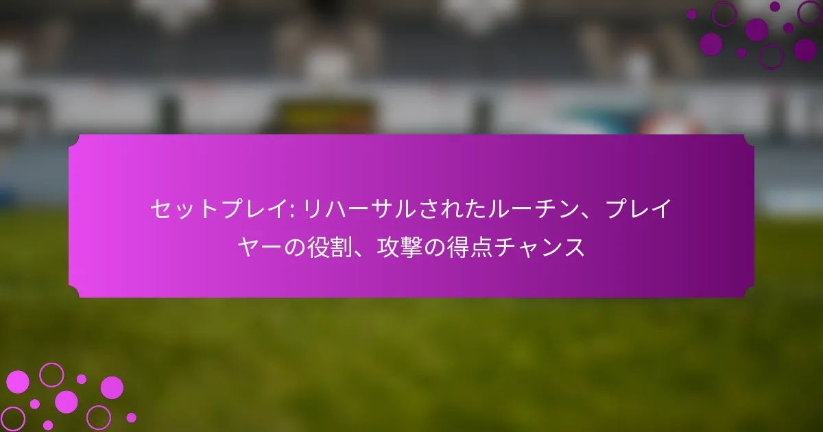 セットプレーはチームの全体的な得点戦略に不可欠であり、防御の弱点を突くための構造化された機会を提供します。チームはしばしば、選手の強みを活かす特定のプレーを設計し、試合中に得点のチャンスを高めることができます。