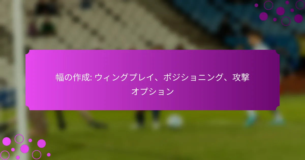 幅を最大化するためには、選手はフィールド上で戦略的に配置される必要があります。ウイングは守備を引き伸ばすために外側に留まり、中央の選手はその動きによって生まれたスペースを利用できます。この配置には、選手が自分の役割を理解し、良好なコミュニケーションが必要です。