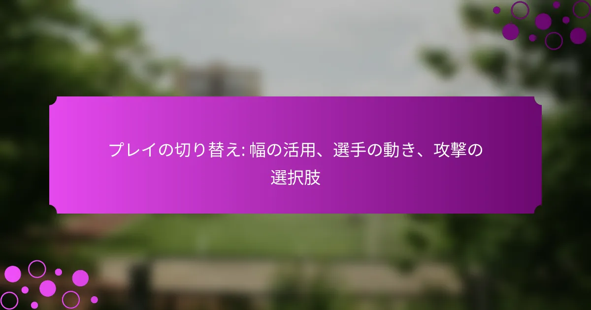 プレーの切り替えは、ボールを片側から反対側に移動させることを含み、通常は一連のパスやドリブルを通じて行われます。この戦術は、フィールドの幅を利用して相手の守備を引き伸ばし、ミスマッチを生み出すことを目的としています。効果的な切り替えは、守備の組織を乱し、新たな攻撃の角度を開くことができます。